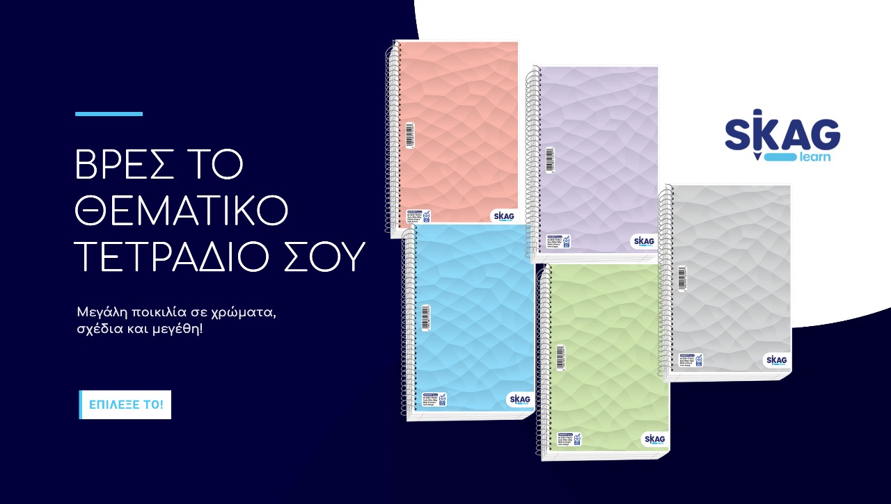 Το απαραίτητο αξεσουάρ για κάθε μαθητή, φοιτητή και σπουδαστή (και όχι μόνο), τα θεματικά τετράδια της SKAG διατίθενται σε μεγάλη ποικιλία χρωμάτων και σχεδίων για αγόρια και κορίτσια ώστε να εκφράζουν τη διάθεσή τους.